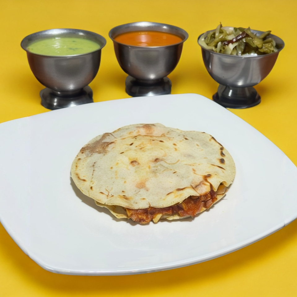 Incluye frijoles, guisado de su preferencia, lechuga o nopales y quesillo
