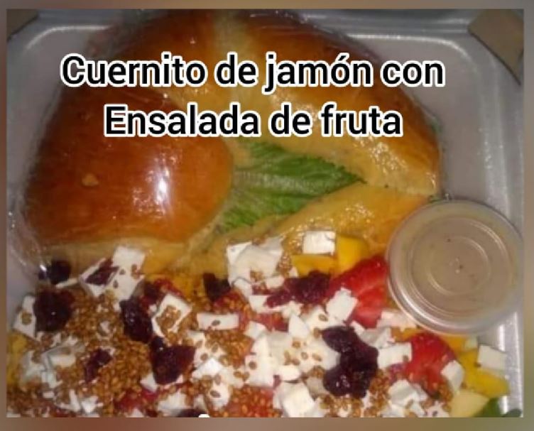 1 pz de cuernito dulce con jamon, quesillo y fruta de temporada
