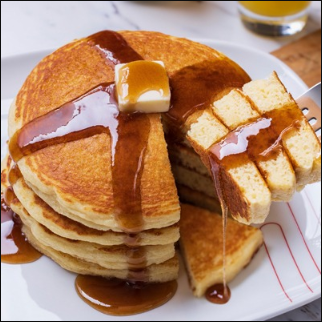 3 Hot cakes de mantequilla, acompañados de miel maple.