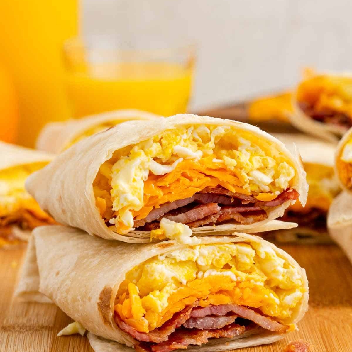 2 burritos en tortilla de harina rellenos de huevo revuelto, queso amarillo y tocino. Acompañados de una crujiente papa hashbrown y pico de gallo a parte si deseas.