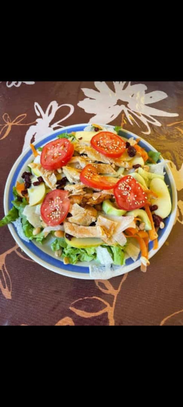 Preparada con lechuga, jícama, zanahoria, pepino, manzana, jitomate, cacahuate, arándanos y aderezo.