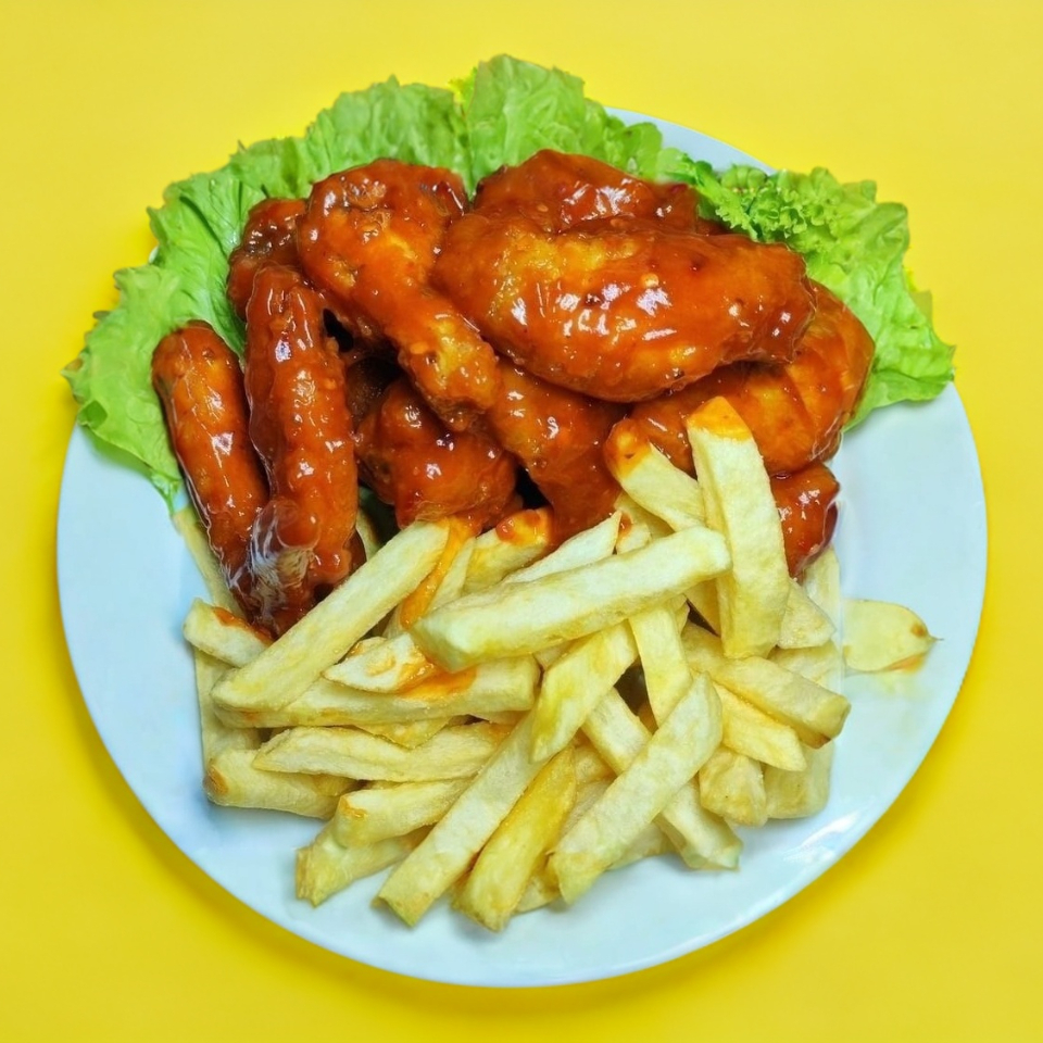 Alitas fritas bañadas en el aderezo de tu preferencia (BBQ, ranch, mango, tamarindo, búfalo).