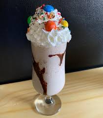 Malteada a base de leche condensada y evaporada más helado sabor m&m’s.