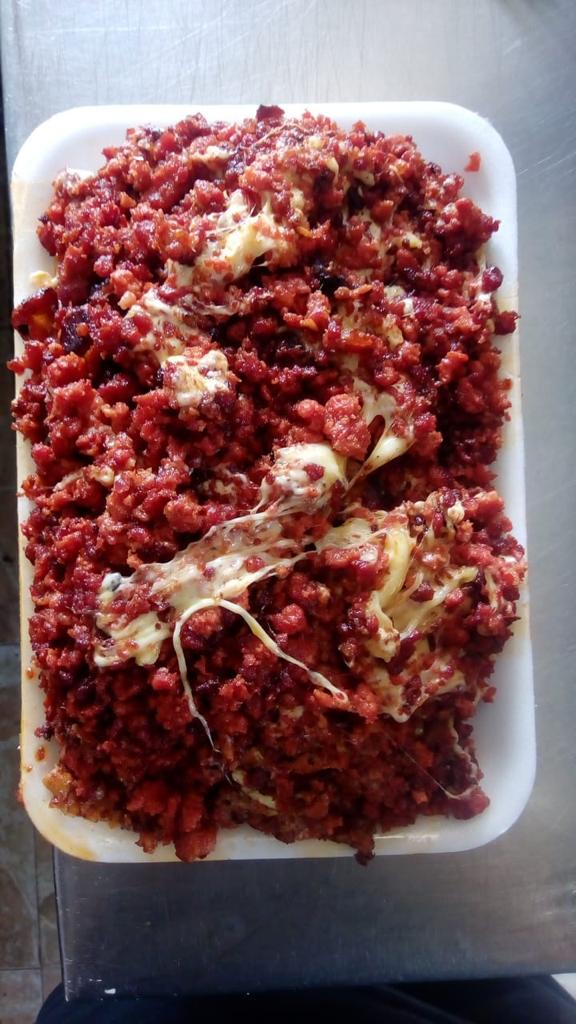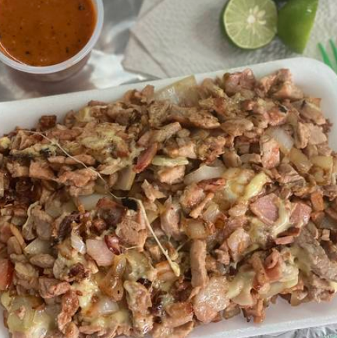 Con proteína de tu elección, cebolla, pimiento y tocino. Para 2 personas. No lleva queso. Si se desea queso, agregar extra.
