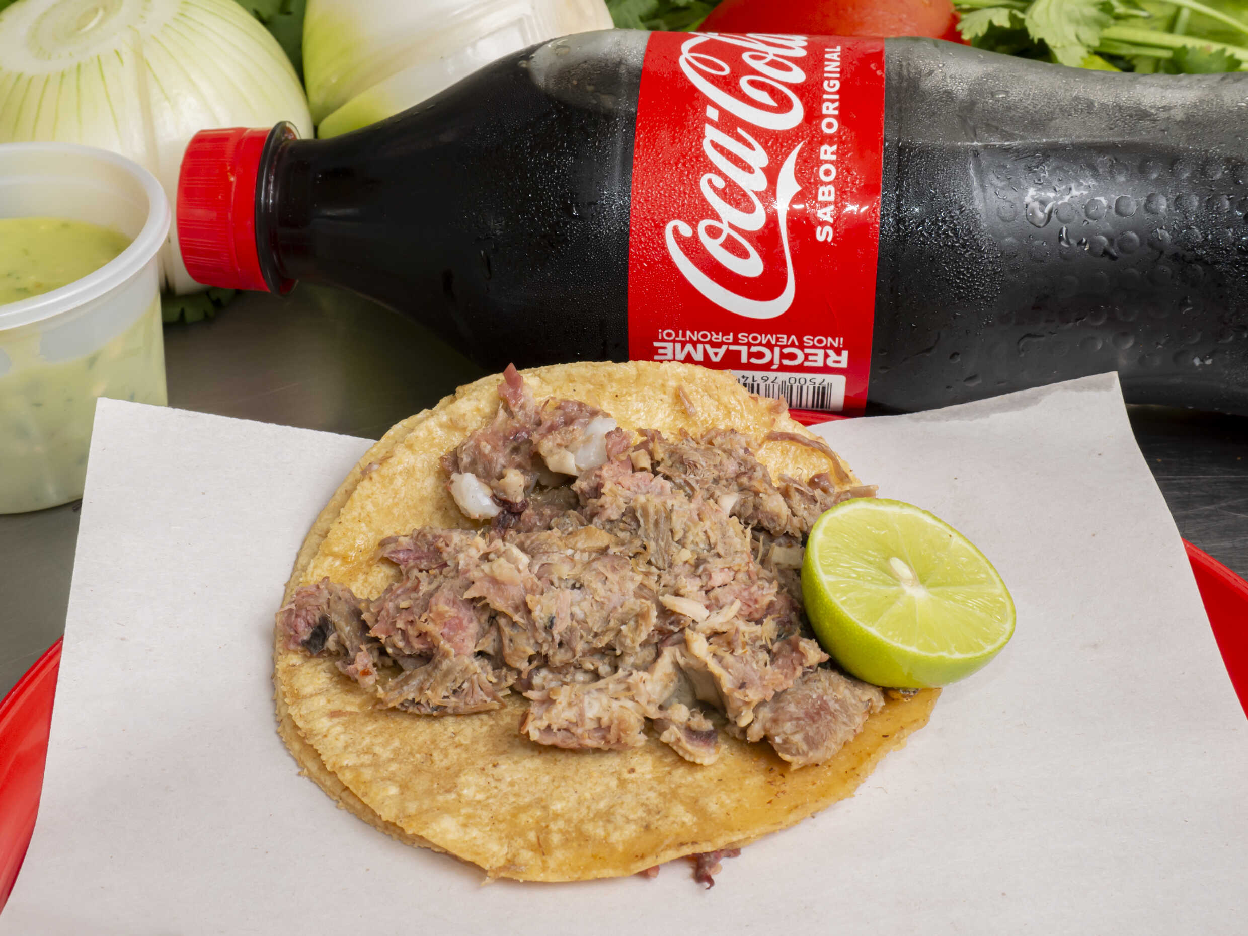 1 Taco con dos tortillas taqueras de maíz con la carne que seleccionen, 1 limón.