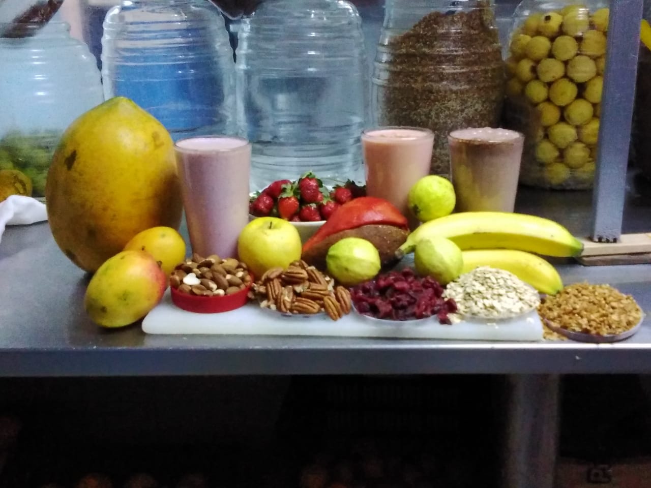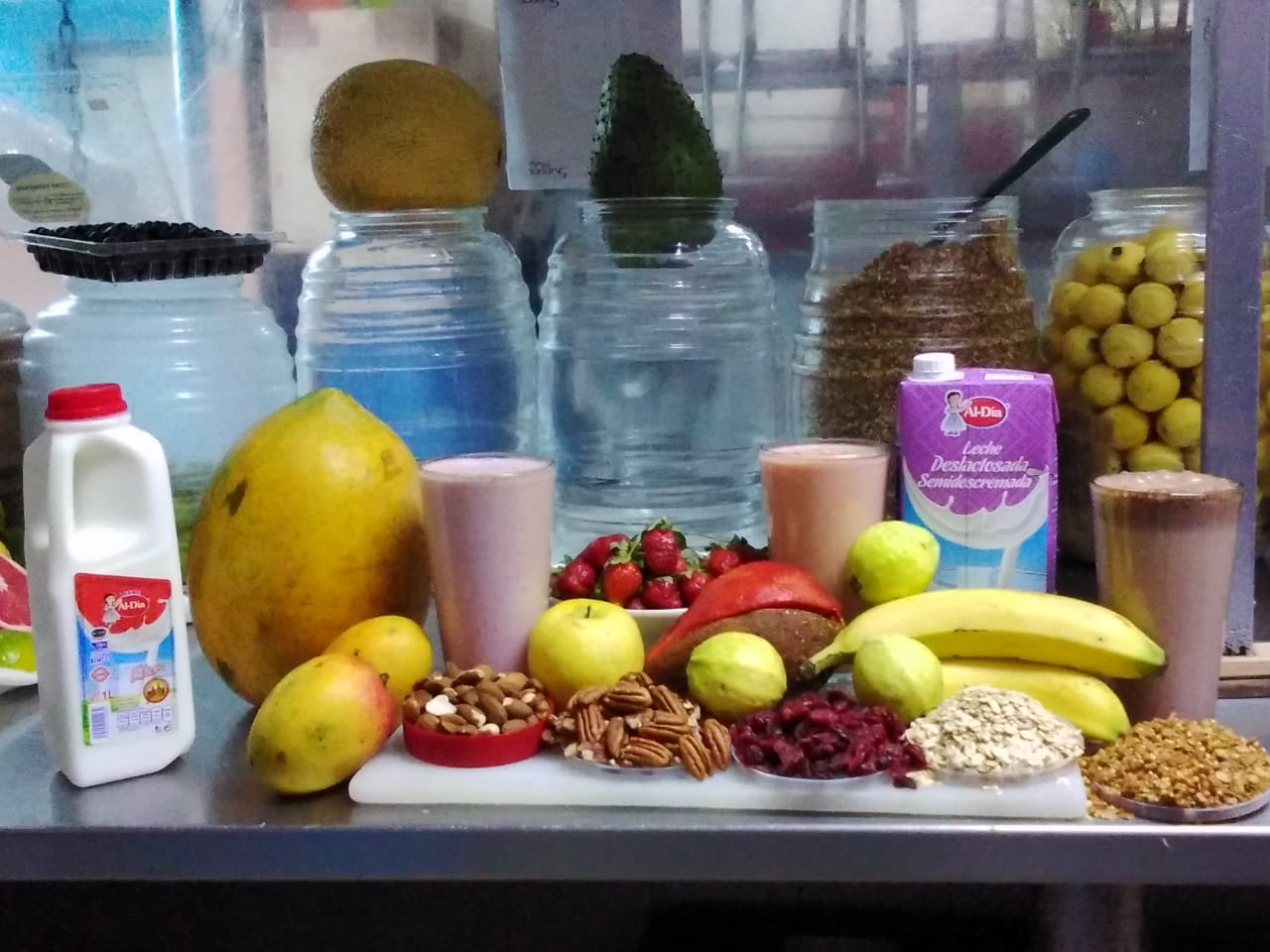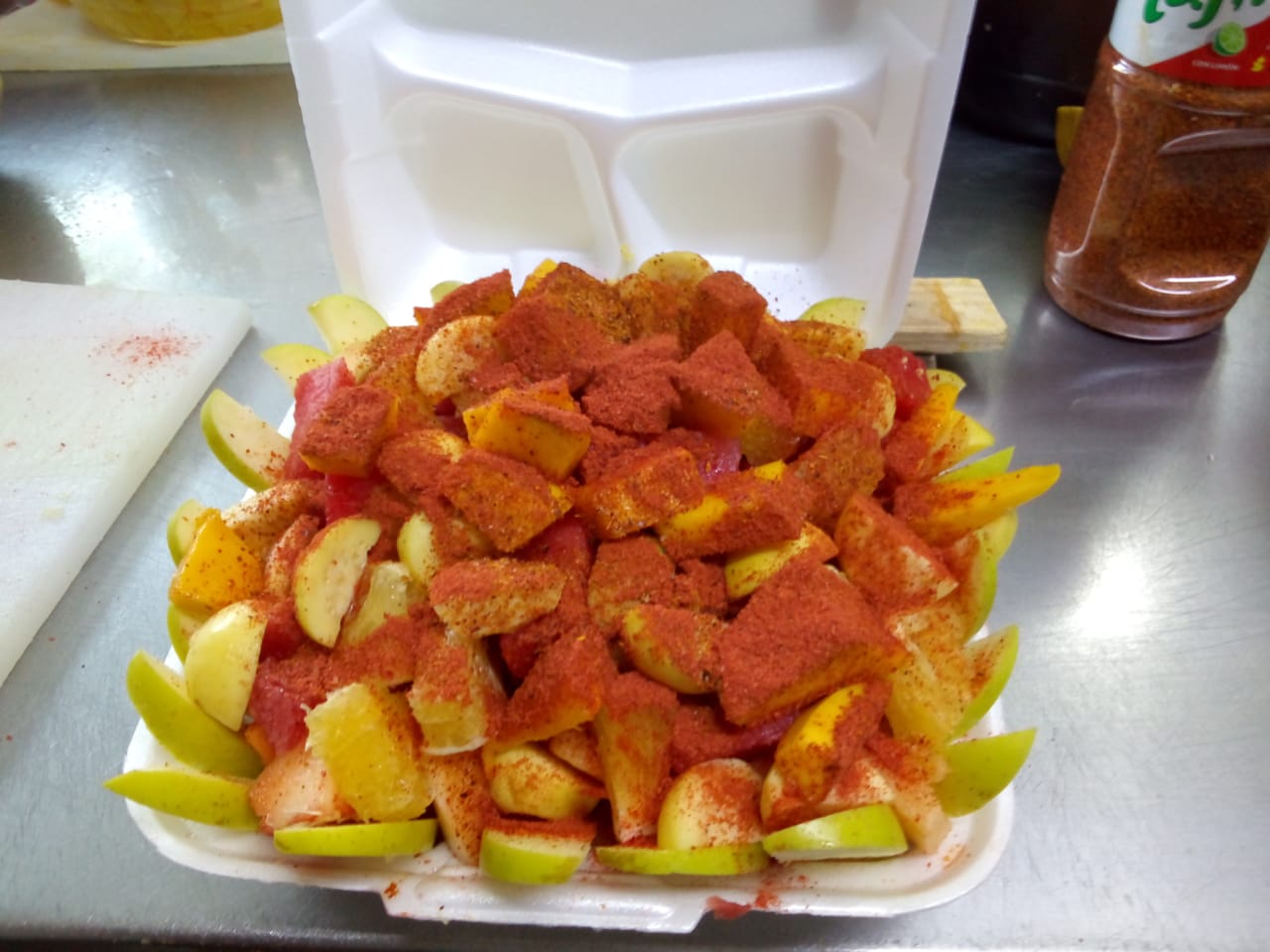 De fruta se le pone piña, sandía, mango, manzana, tuna, fresa, papaya, melón y plátano.