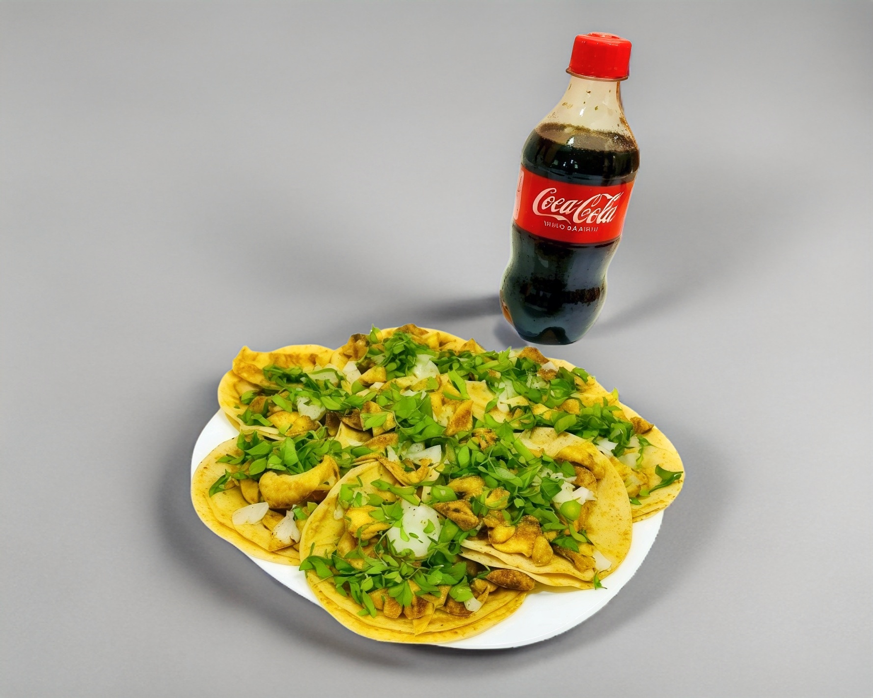 Combo de 8 tacos de pollo, acompañado de una bebida de 355 ml