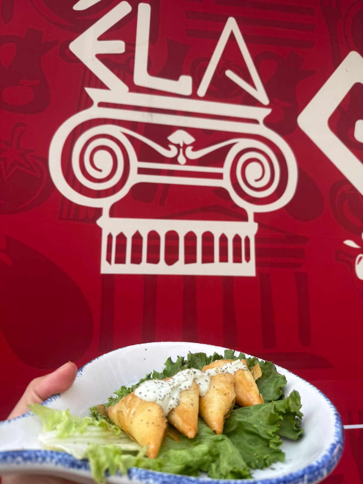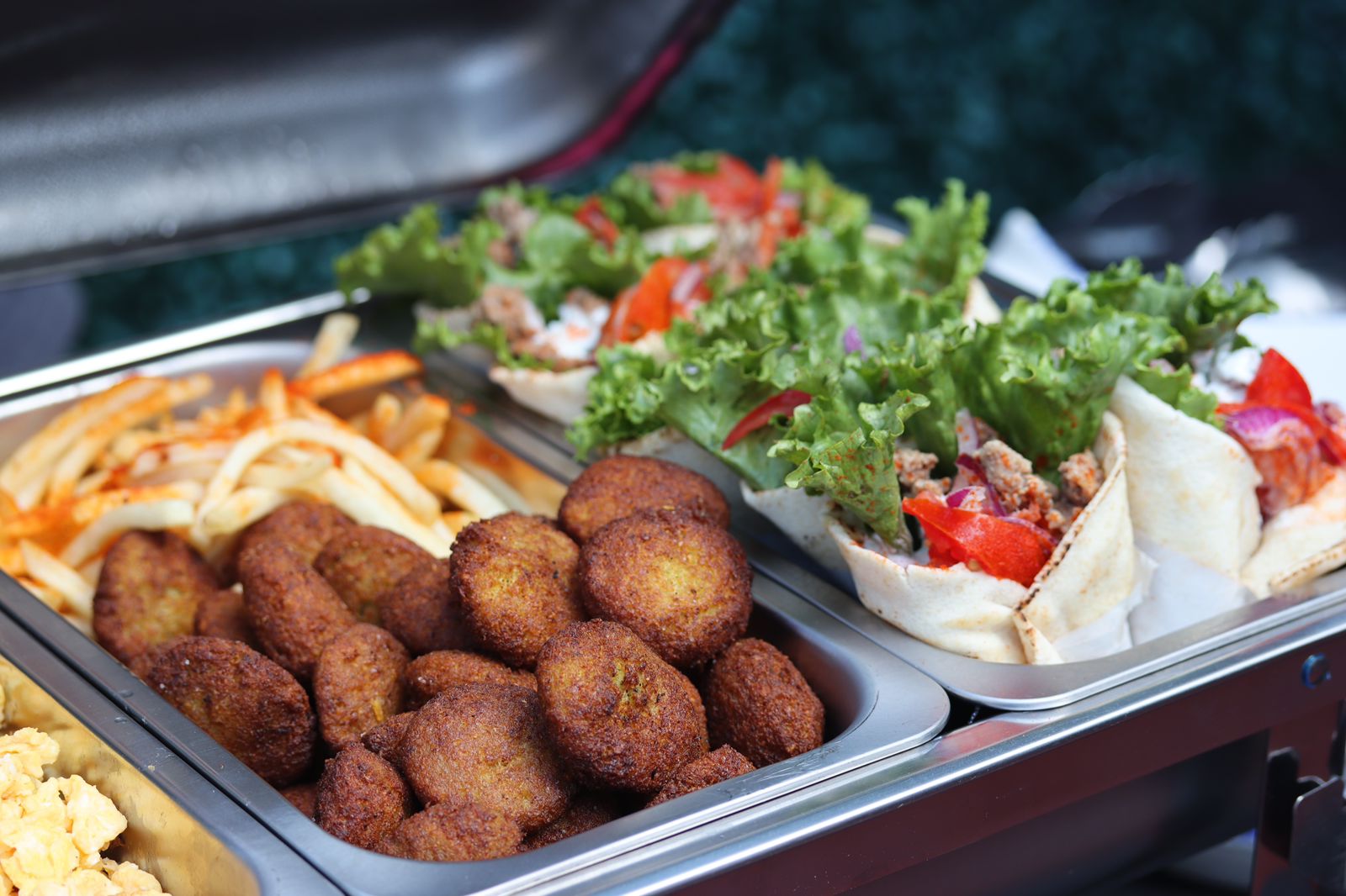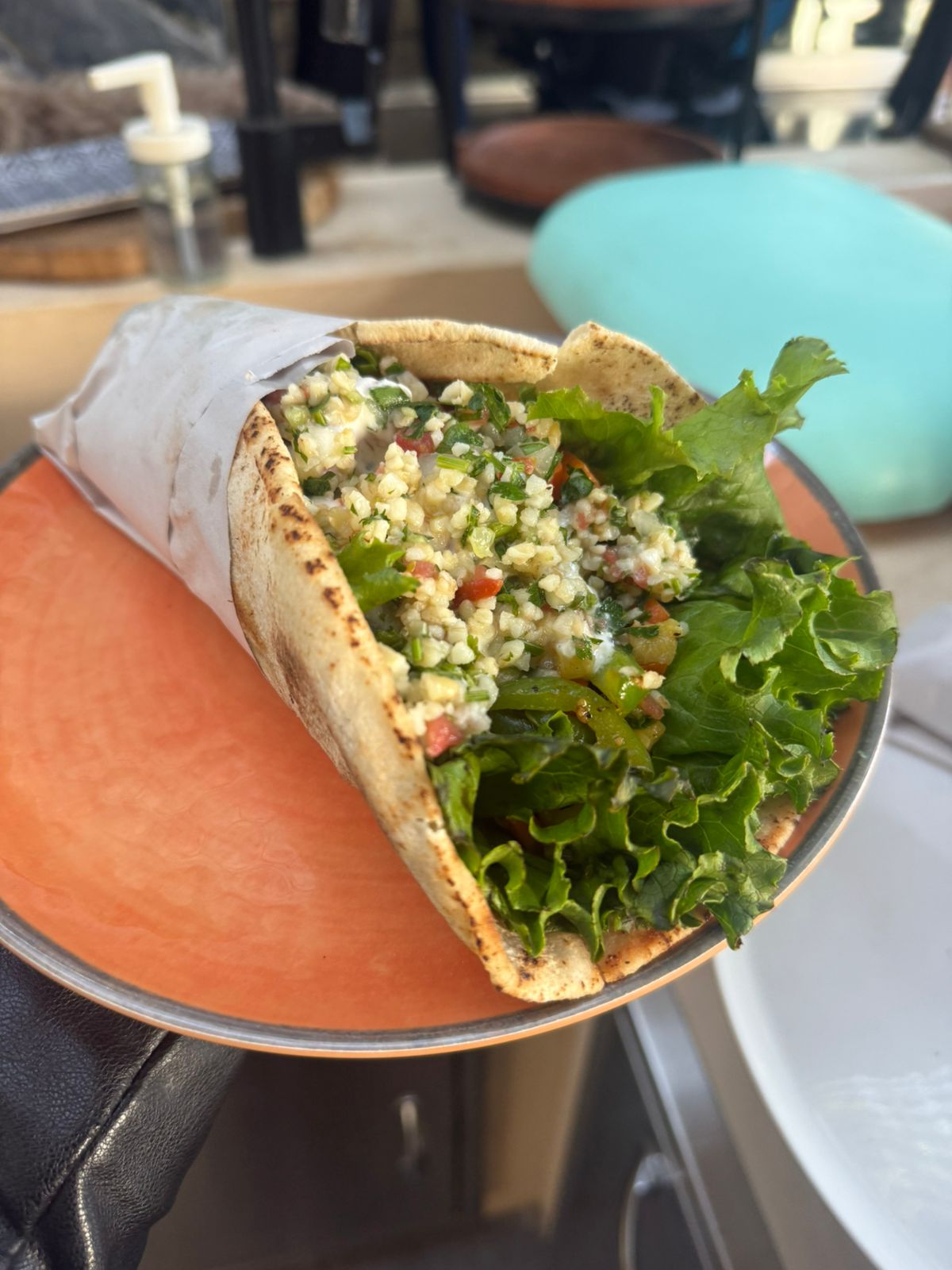 Gyro, kebab o falafel, tabule, ensalada micri o ensalada griega.