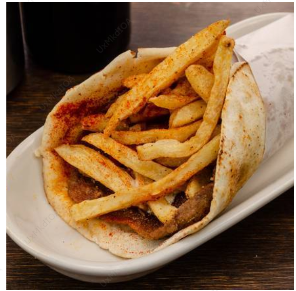 Con verduras. Acompañado de papas a la francesa o aros de cebolla. ¡Gyros es el taco griego! con pan pita, cebolla morada, jitomate y aderezado con tzatziki y un toque de paprika.