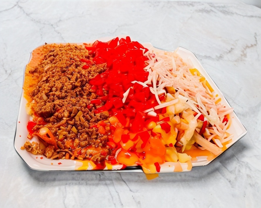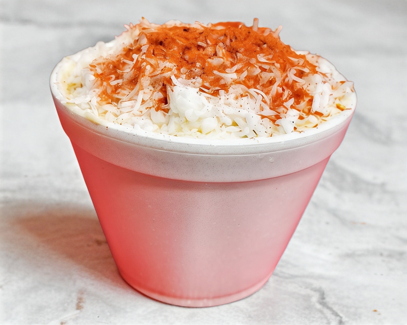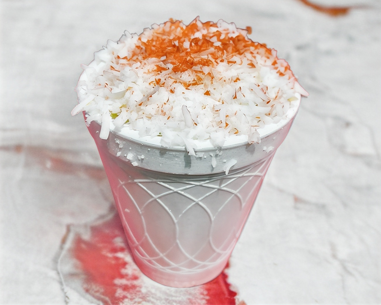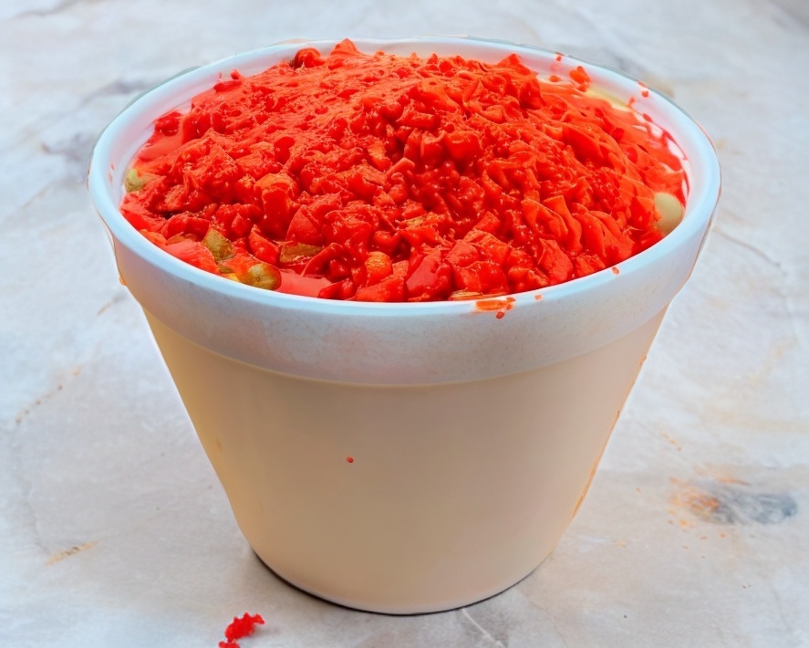 Esquites, fritura triturada (cheetos torciditos, cheetos flamin hot y/o combinado), limon, mayonesa y chile preparado y/o en polvo.