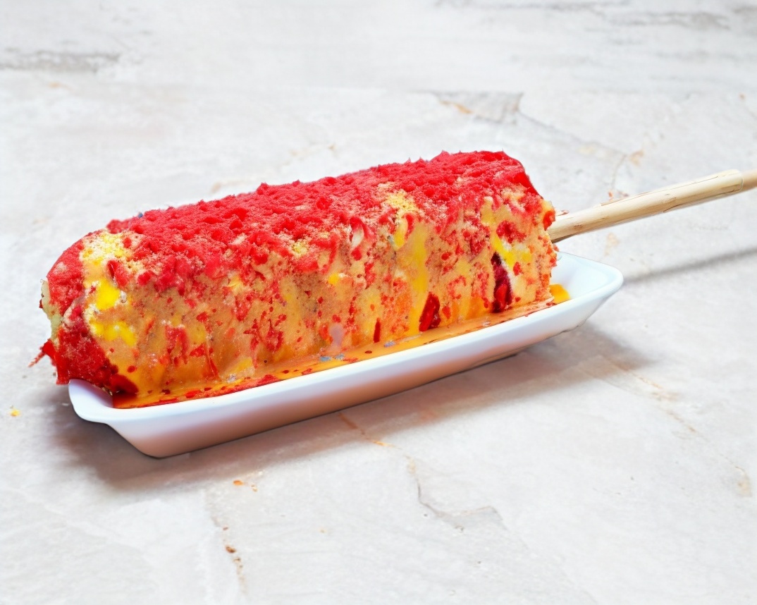 Esquies, con fritura triturada (cheetos flamin hot, cheetos torciditos y/o combinado), limon, mayonesa y chile preparado y/o en polvo