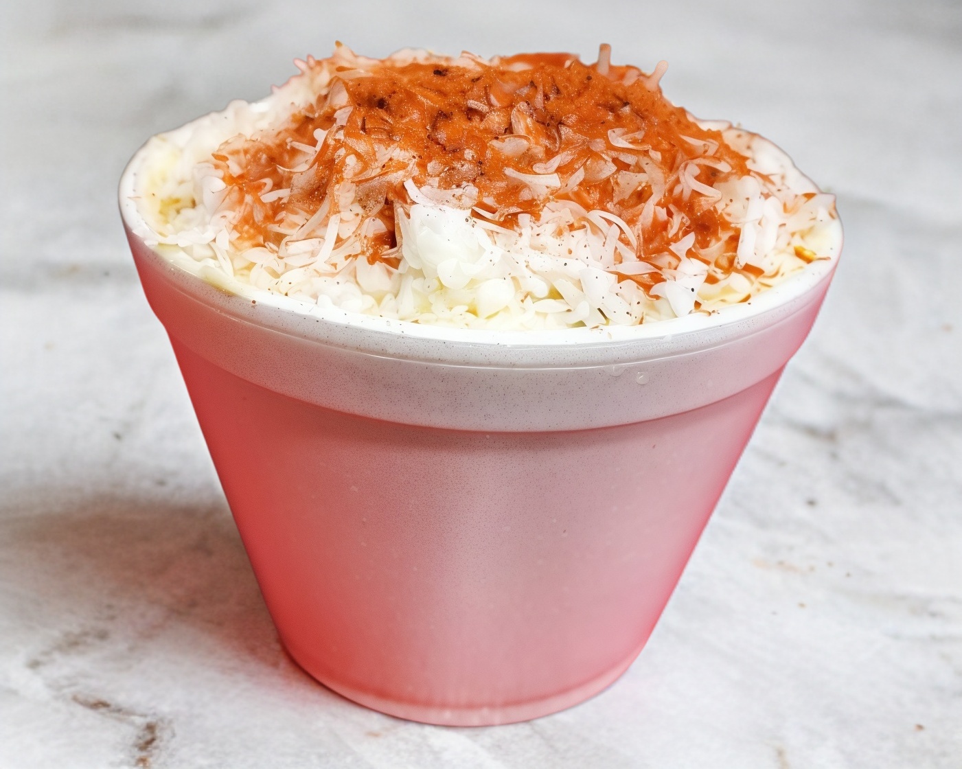 Esquite con limón, mayonesa, chile preparado y/o en polvo, queso rayado.