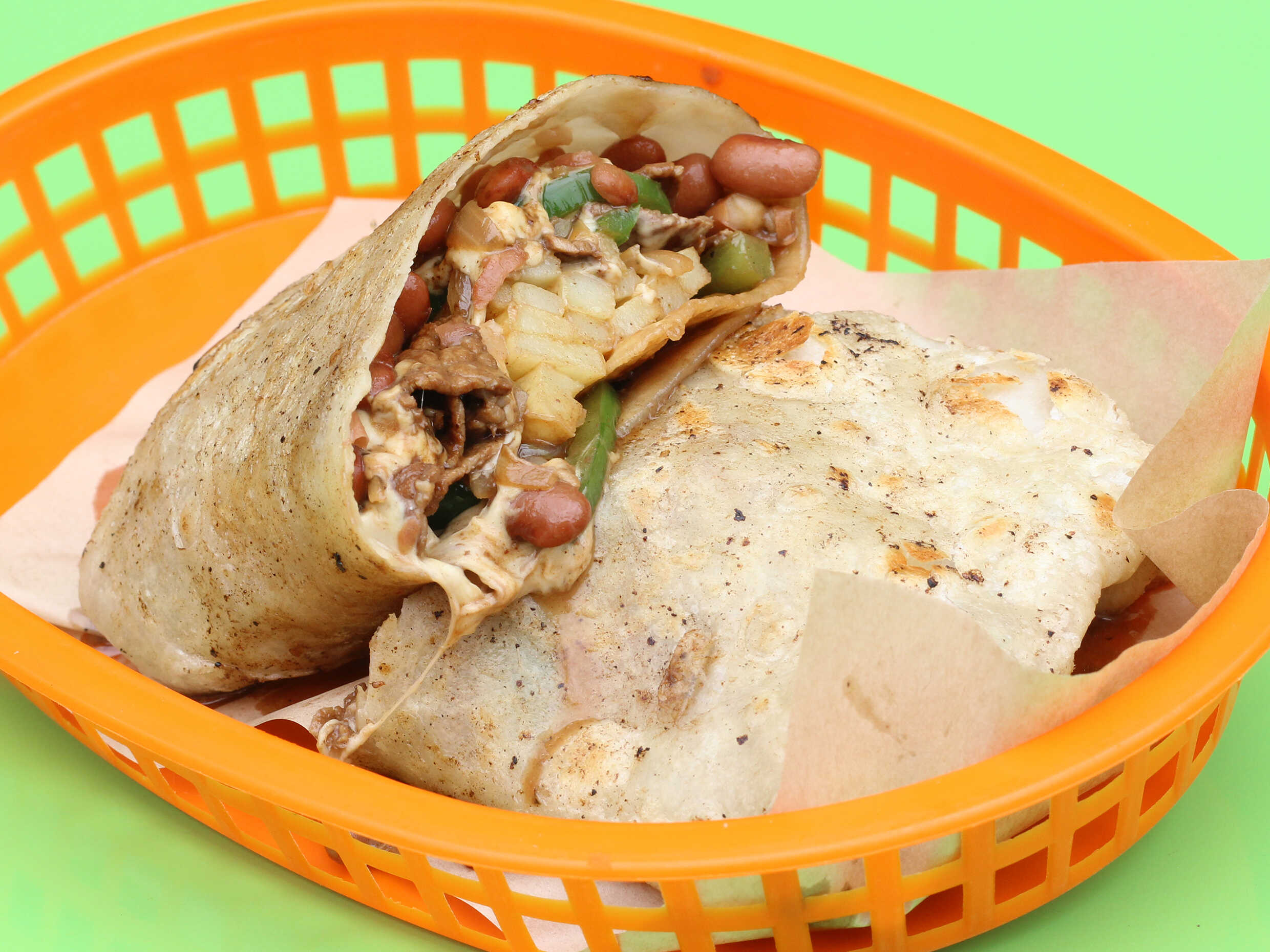 Bistec, pastor, pollo asado, cebolla asada, quesillo, frijoles, papas y aguacate.