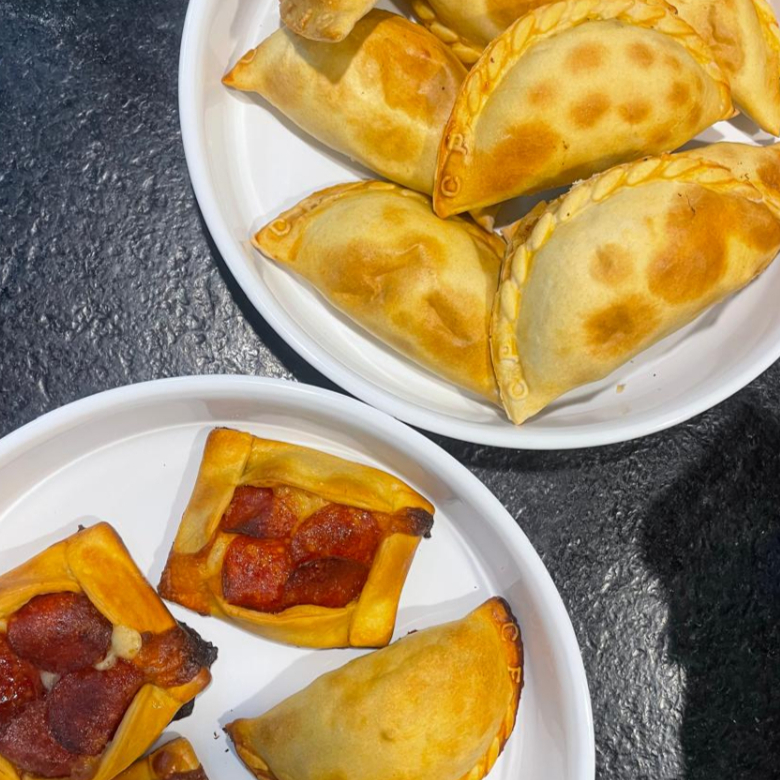 Elige 18 empanadas de tus sabores favoritos (dulces y/o saladas). Incluye una salsa picante.