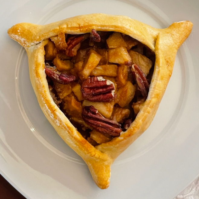 Empanada al horno rellena de manzana con canela y nueces.