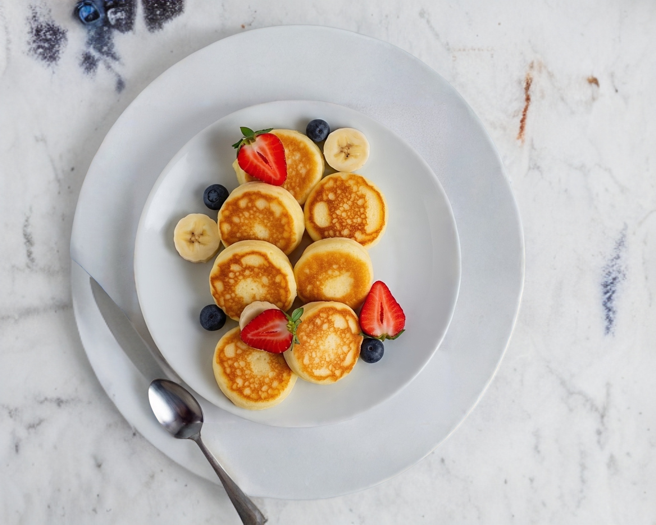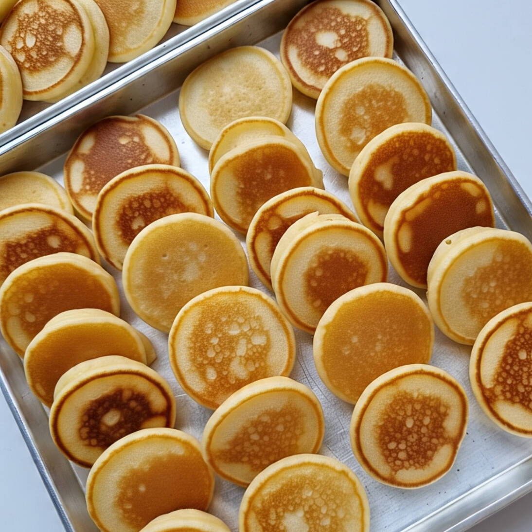 25 PZ de mini hotcakes acompañados de lechera, almendra fileteada, nuez y azúcar glass