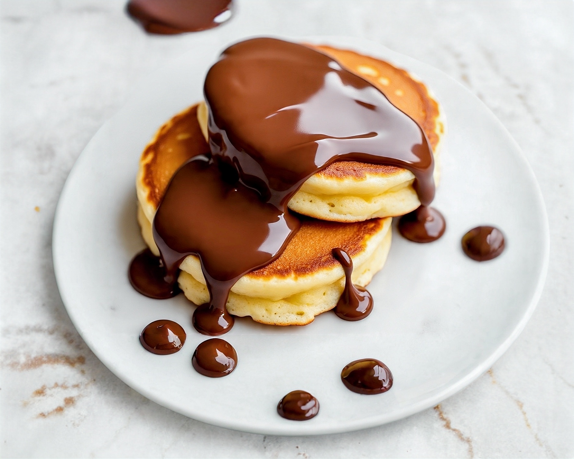 Orden de tres ricos y esponjosos HotCakes bañados en Nutella