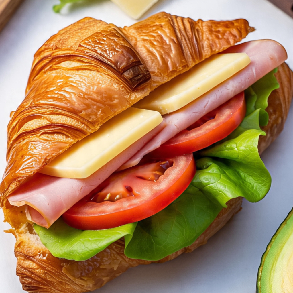 Cuernito con jamón queso panela lechuga jitomate aguacate rajas o chipotle