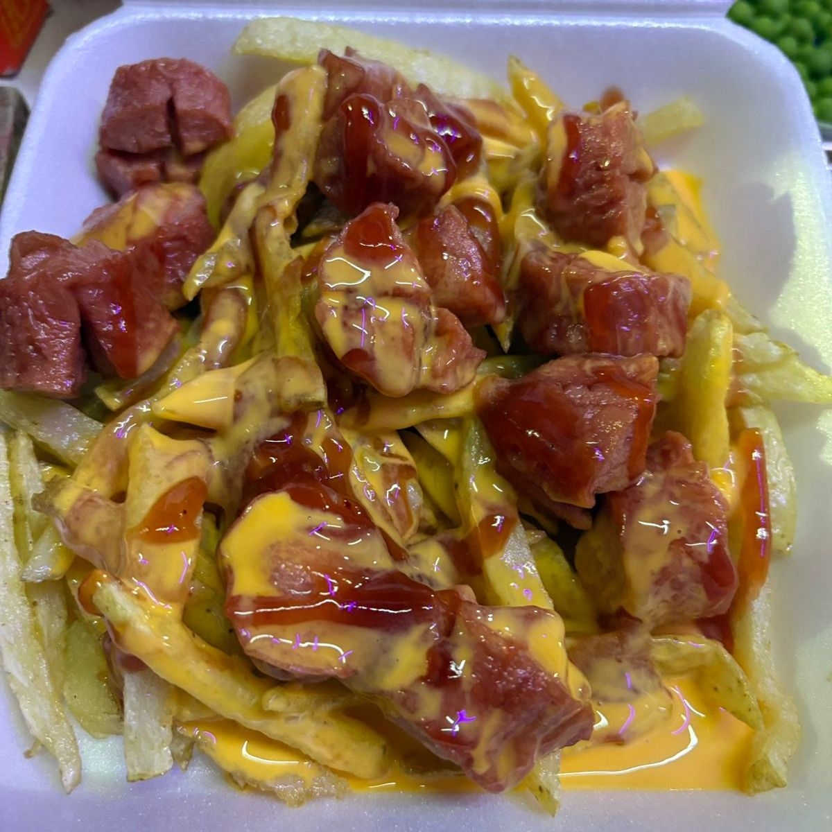 4 piezas de alas bbq acompañadas con papas a la francesa y jícama