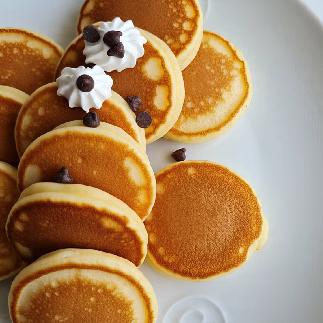 25 pz de Mini hotcakes acompañados de mermelada de fresa y crema con granillo de chocolate y nuez