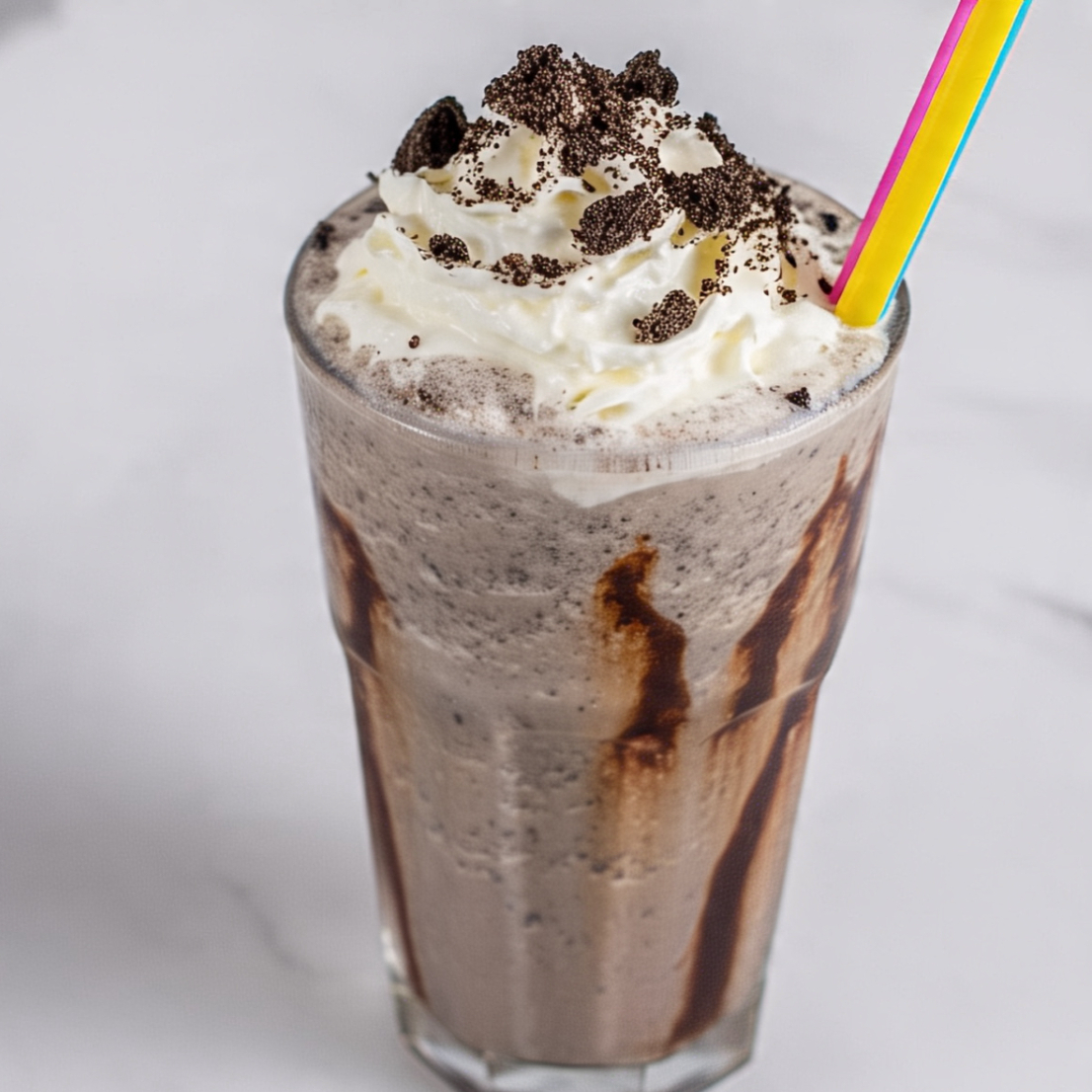 Frappe de galleta Oreo decorada con una misma crema batida y granillo de chocolate.