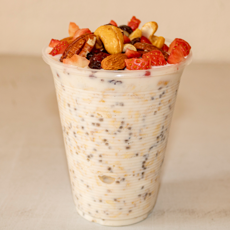 Avena con yoghurt y leche trasnochada, agrega fruta y semilla de tu preferencia