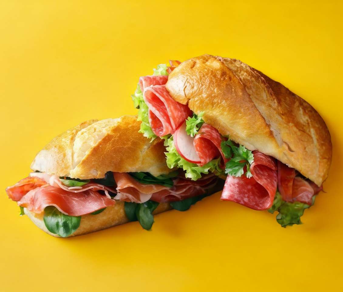Carnes frías (salami, pepperoni, tocino jamón), Mayonesa, mostaza, picante, queso, pepino, jitomate, pimiento, germen de alfalfa, lechuga.