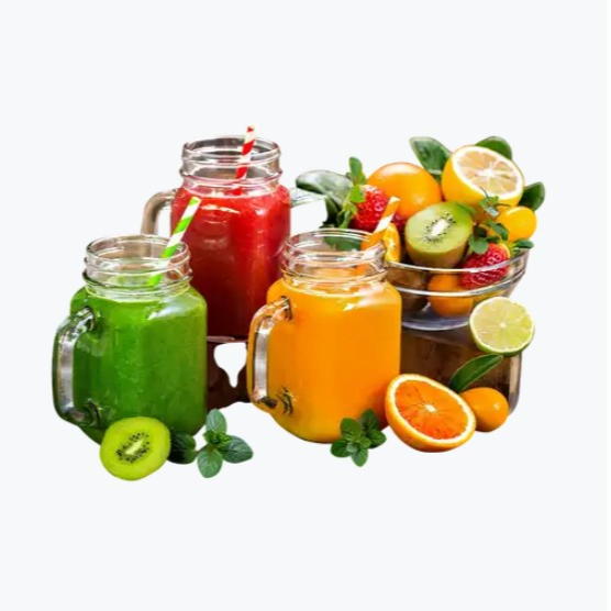 Jugo de naranja, piña, nopal y limón con tamaño a elegir.