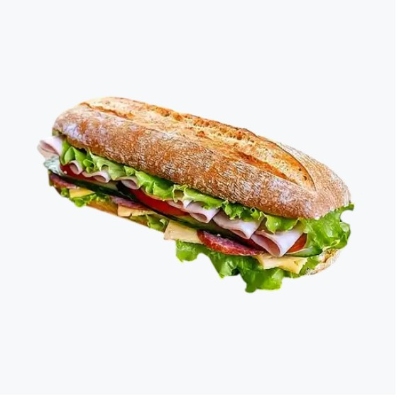 Pan bigote relleno de pollo asado o empanizado, o pechuga de pavo ahumado o atún al gratín, aderezado con mayonesa natural. Complementado con pepino, lechuga, jitomate, aguacate, chiles en vinagre, germen y aderezo de chipotle sándwich.