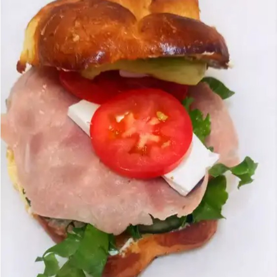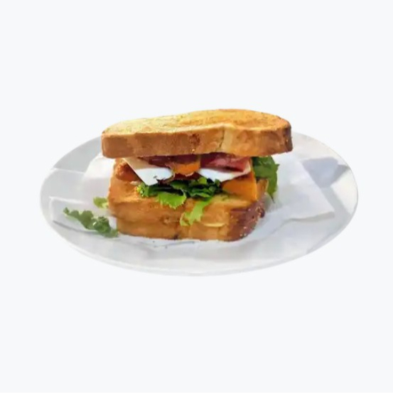 Pan de la casa ligeramente tostado relleno de jamón o pollo asado o empanizado o atún o pechuga de pavo ahumado acompañado con queso al gratín y queso panela, tocino al horno mayonesa natural, pepino, lechuga, jitomate, chiles en vinagre, germen y aderezo de chipotle.