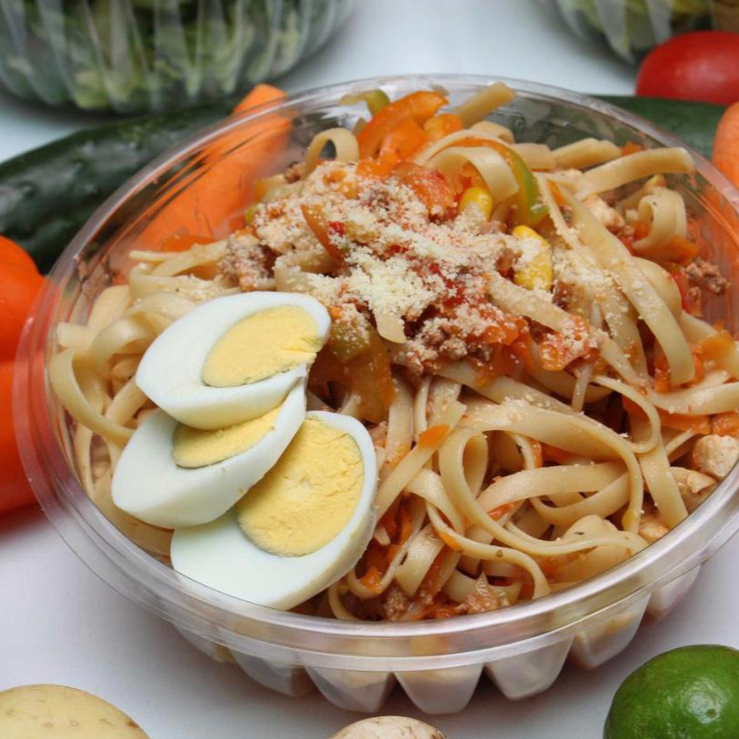 Base de pasta, 100 g proteína (elige entre 1 ó 2), 2 toppings y 1 salsa.