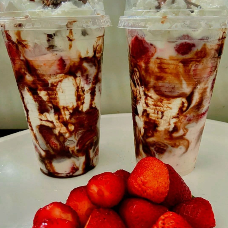 Vaso de medio lito 500 ml con chantilly crema y lechera y granillo de chocolate, dulce y cremosa