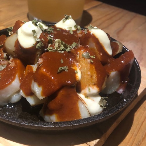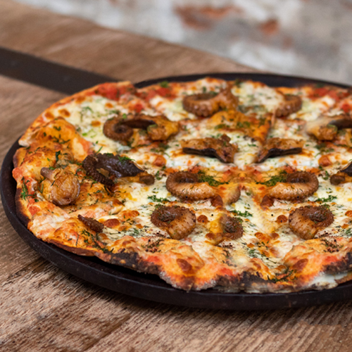Tomate, mozarella, chorizo cantimpalo, chile seco, cebolla caramelizada, chile cuaresmeño, cebollín y salsa sriracha.