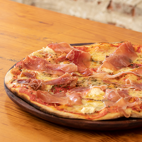 Tomate, jamón serrano, mozarella, jocoque y orégano