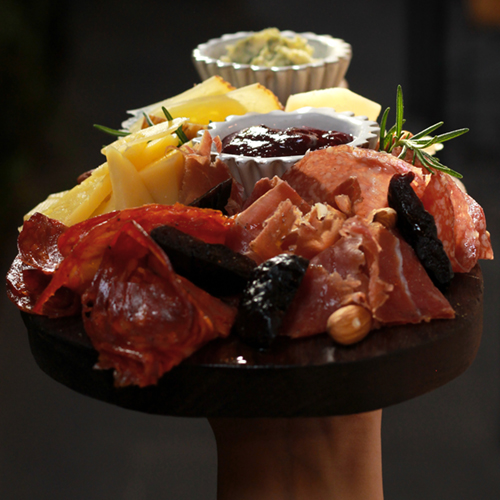 Cabra fresco, jitomate deshidratado y aceitunas negras, jamón serrano con parmesano, pera con gorgonzola, espárragos con gruyère.