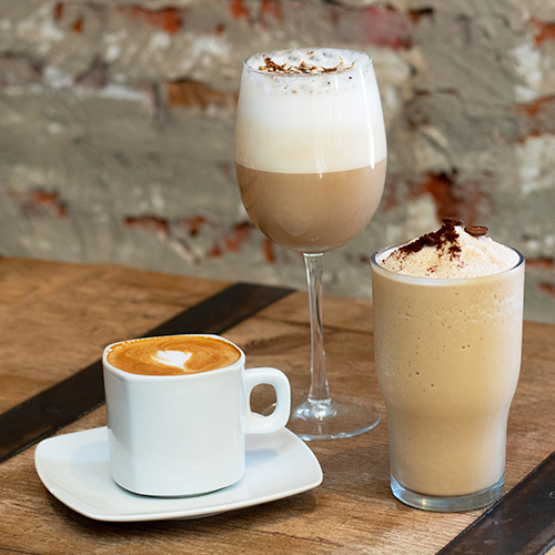 Extracción de un café espresso leche deslactosada montada a vapor.