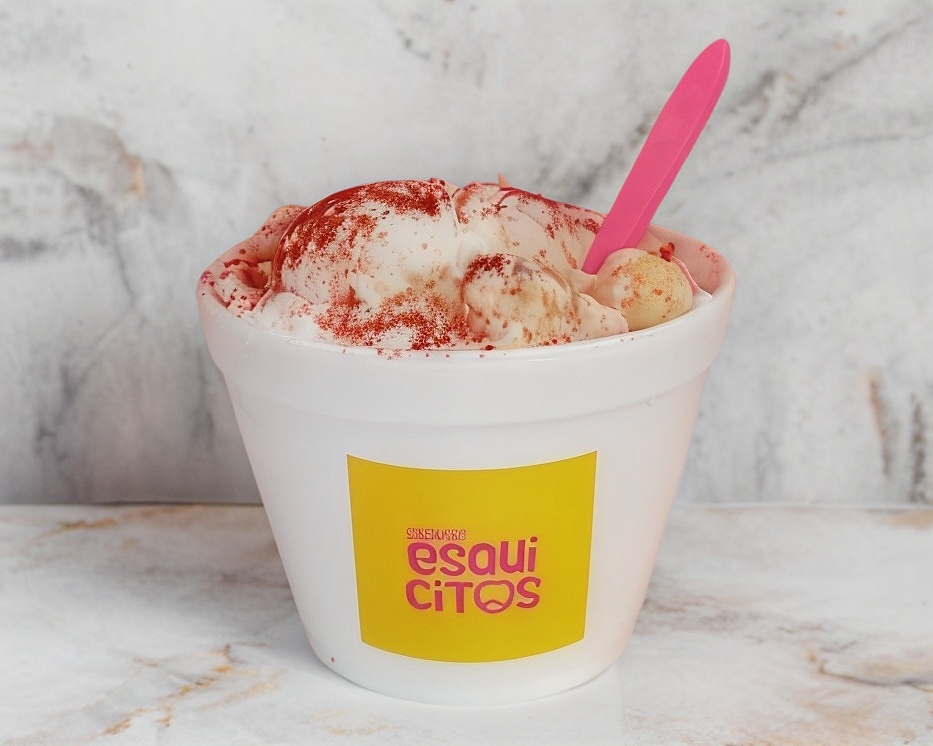 Esquites con mayonesa, queso, limón, chile, toppings a elección y mollejas.