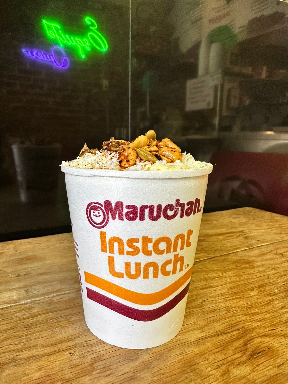 Maruchan, esquite, mayonesa, queso, limón y salsa de tu elección.