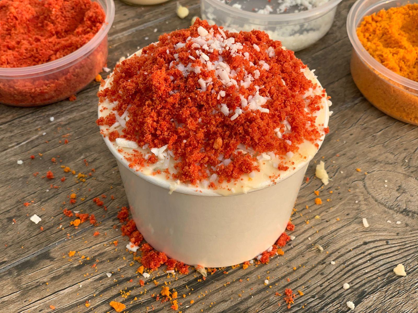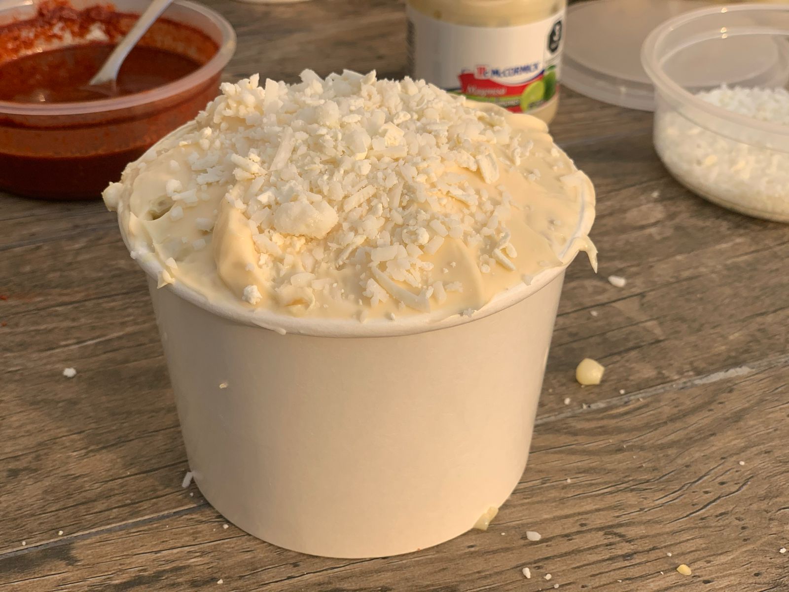 Disfruta de nuestro esquite con mayonesa, queso y picante. Con salsa a elección.