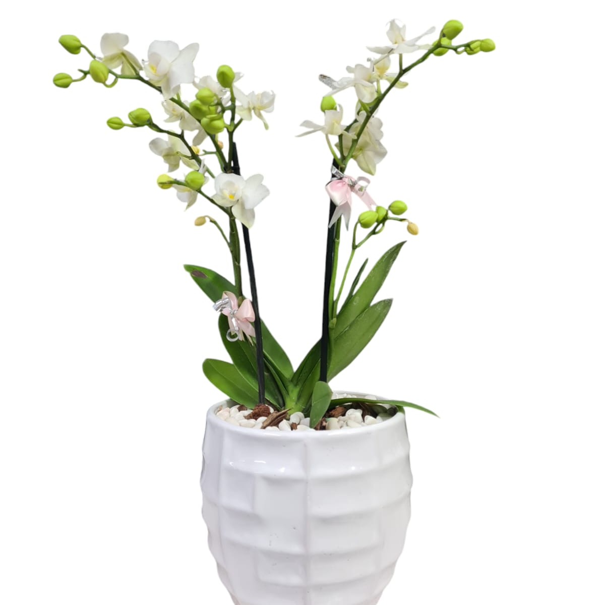 PLANTA DE ORQUIDEA MINI MULTIFLORA EN BASE SE CERAMICA