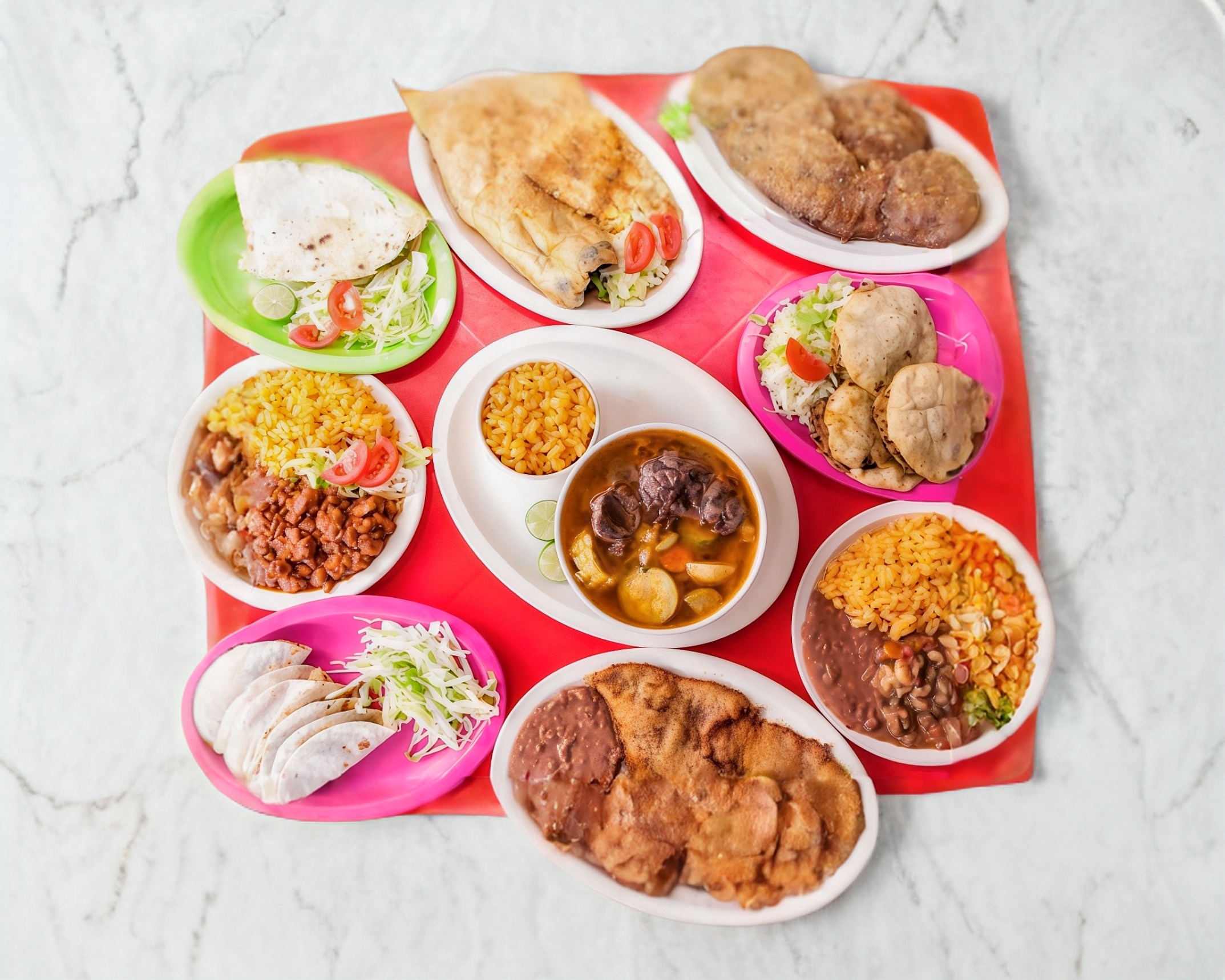 Elige tu primer tiempo*1 + Elige tu segundo tiempo*1 + Elige tu tercer timpo (A)*1+ agua de 1/2 lt + postre + pan blanco ó tortillas.