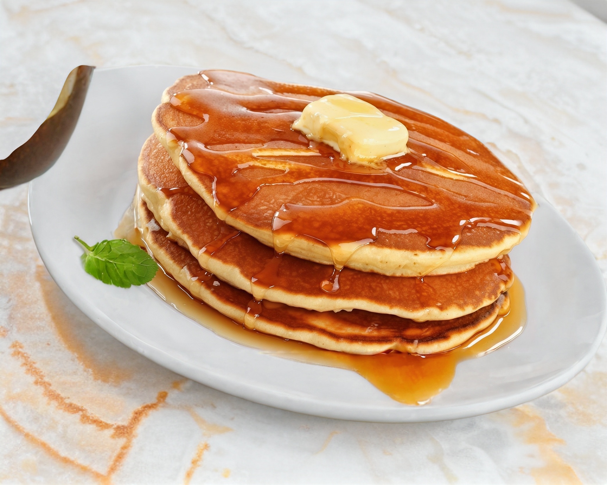3 piezas de hot cakes acompañados con jarabe de miel maple o mermelada de fruta. Incluyen: cafe de olla, fruta y 1 pan dulce pequeño.