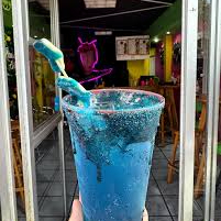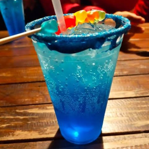 Deliciosa combinacion de refresco de limon, energizante y jarabe de moras, decorado con gomitas y cerezas, asi como un toque de la reseta secreta para obtener un delicioso Azulito tradicional.