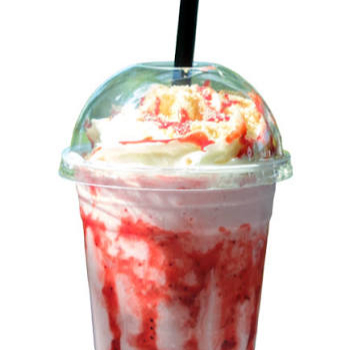 Delicioso Frappé sabor a Pay de Fresa, con fruta natural.