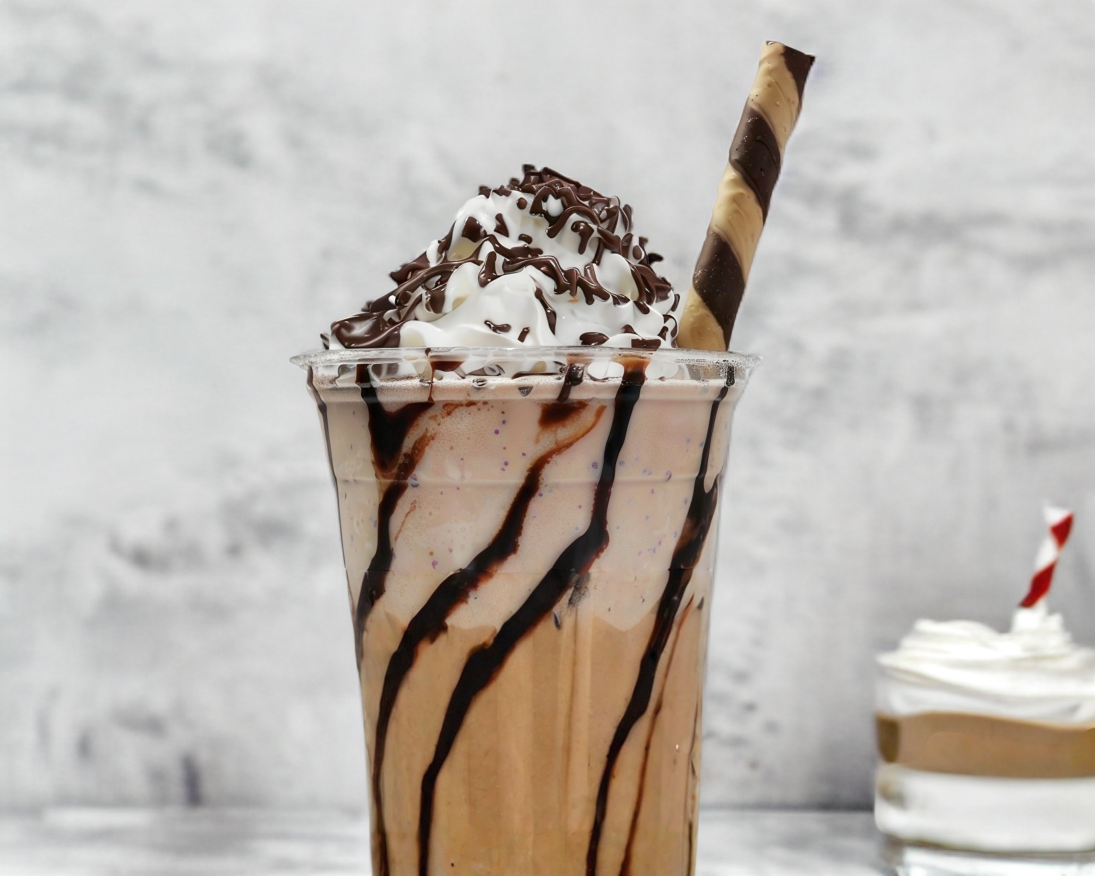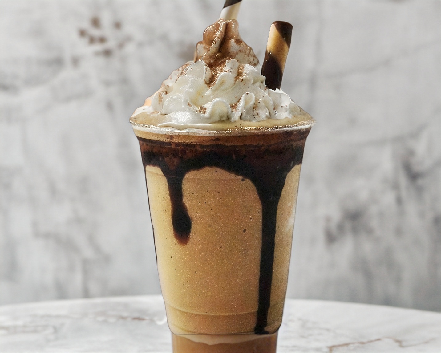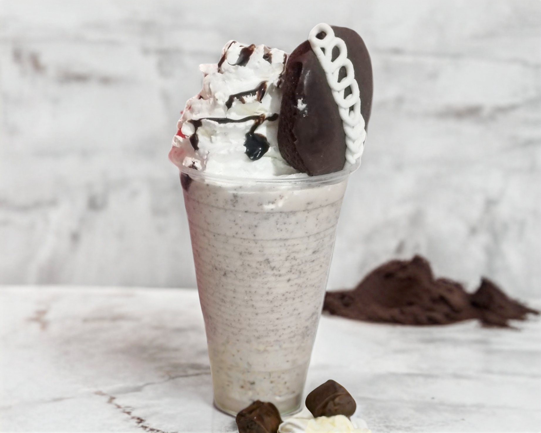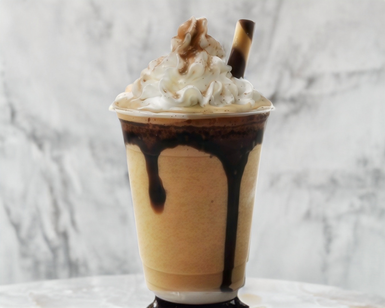 Delicioso frappé de Pingüino decorado con crema batida y un Pingüino