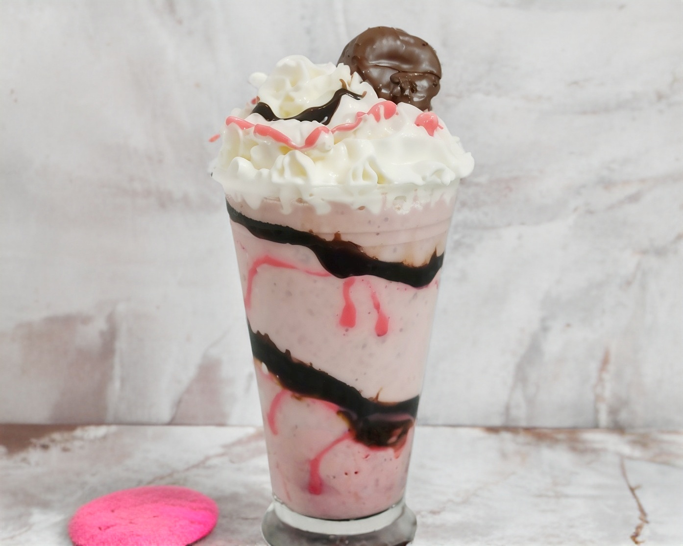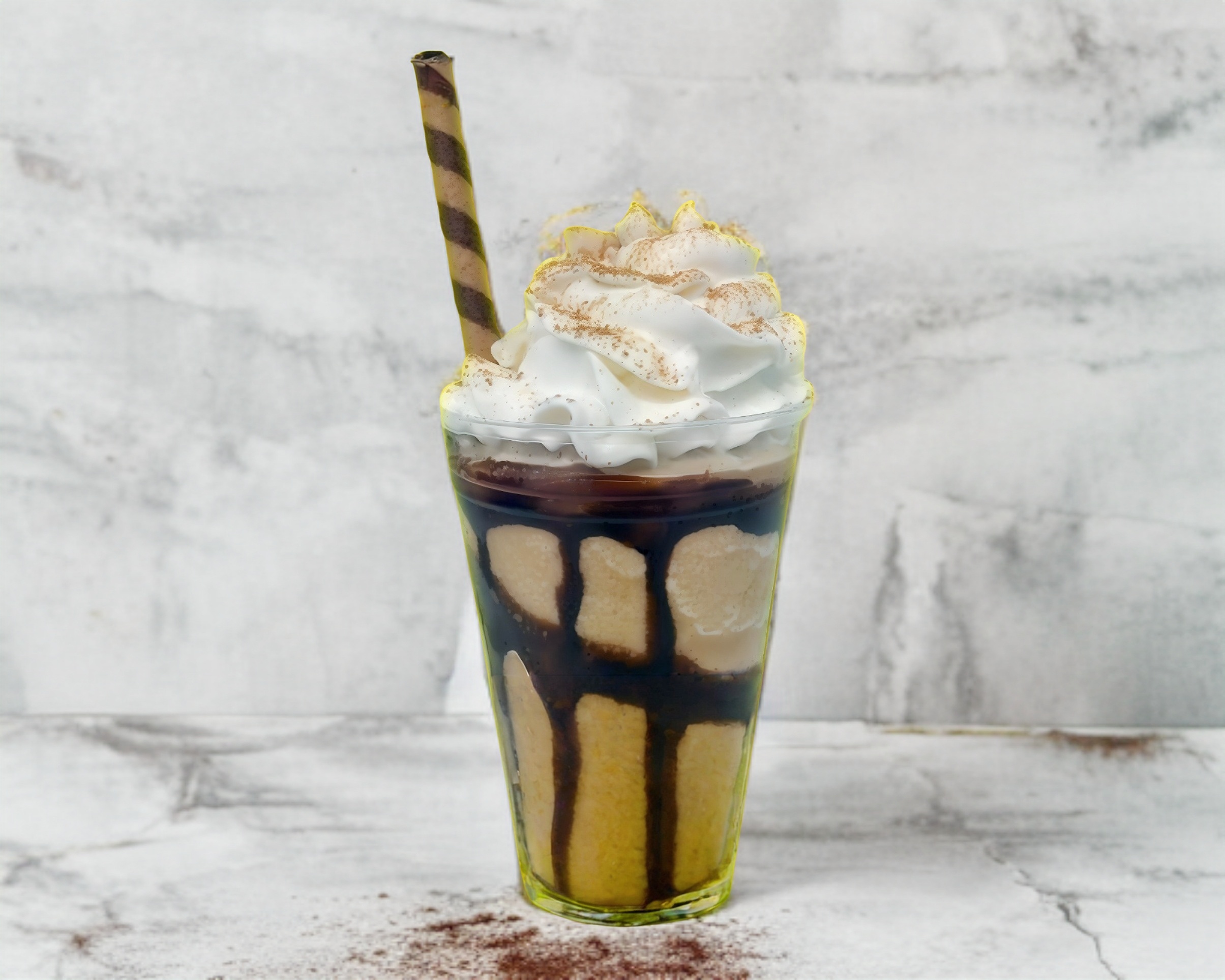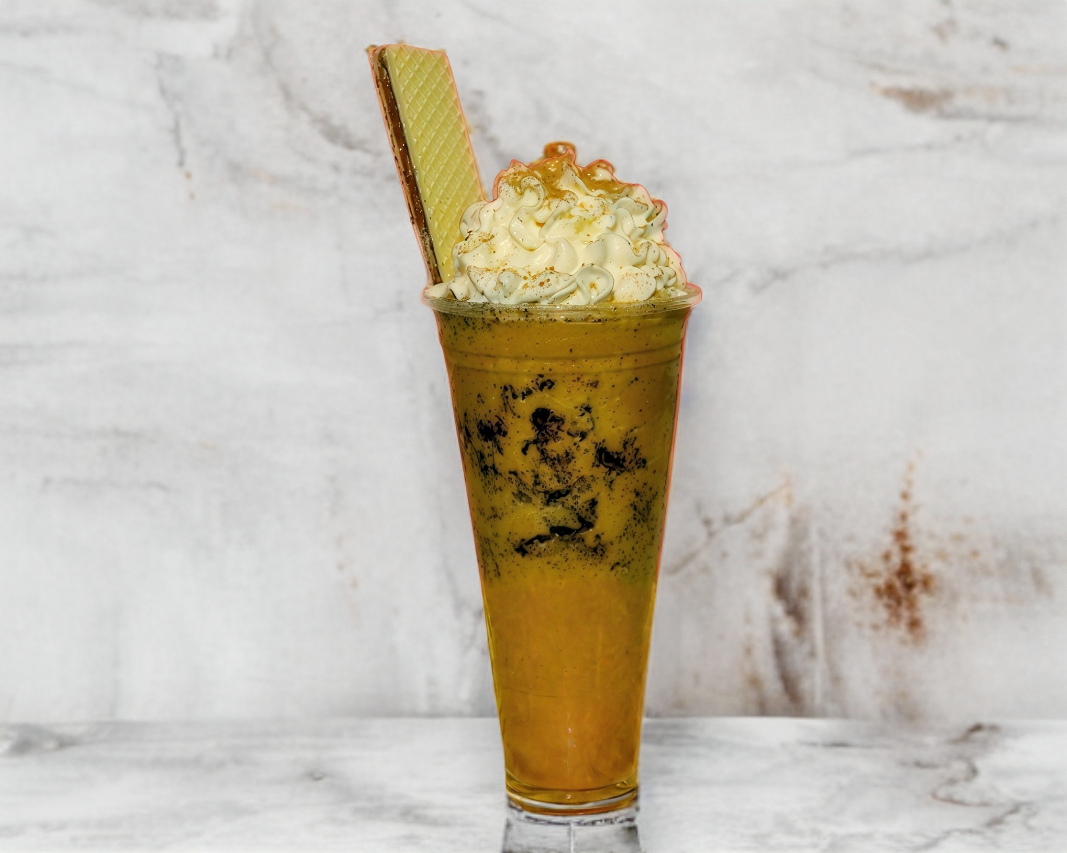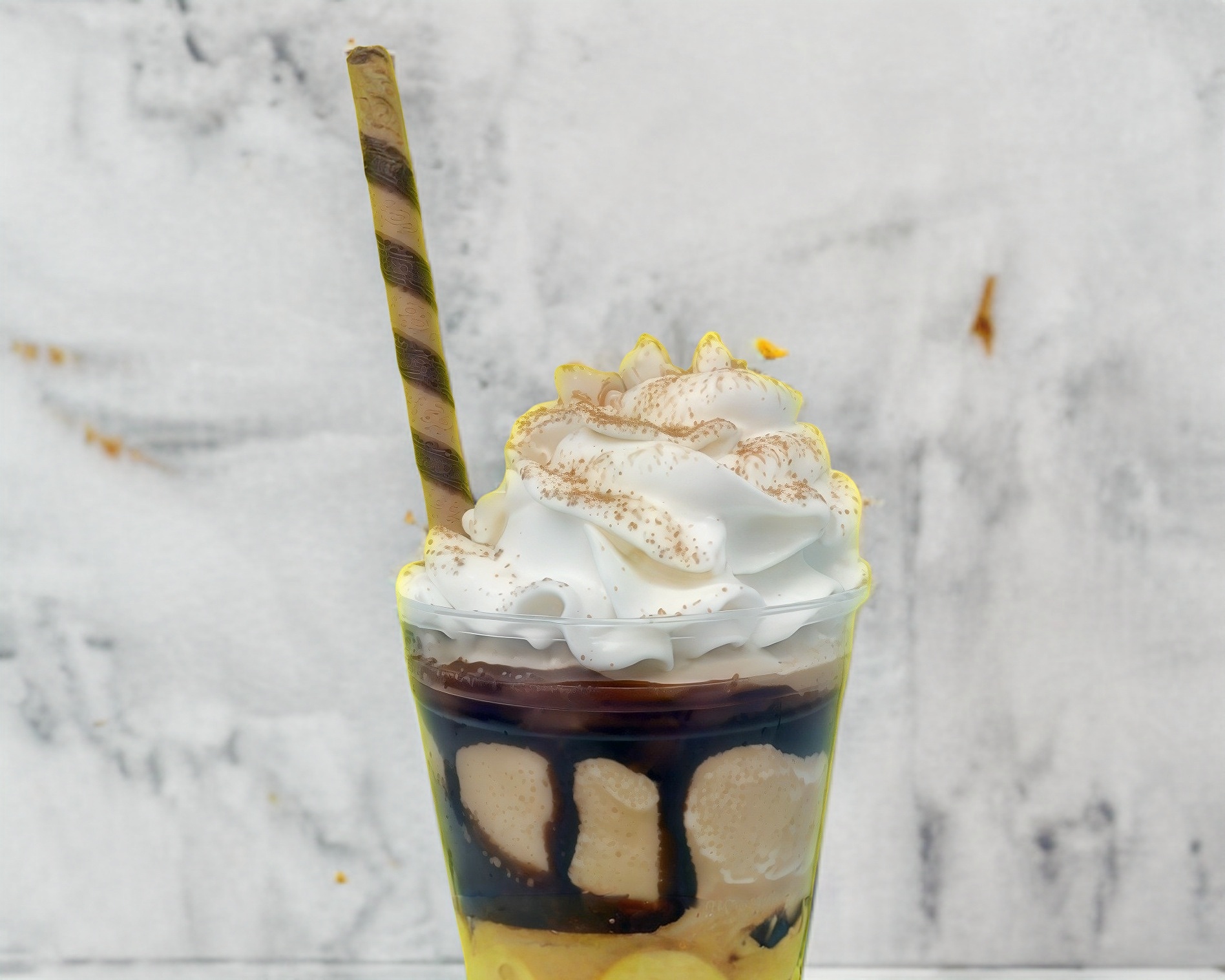 Delicioso frappé de Pingüino decorado con crema batida y un Pingüino