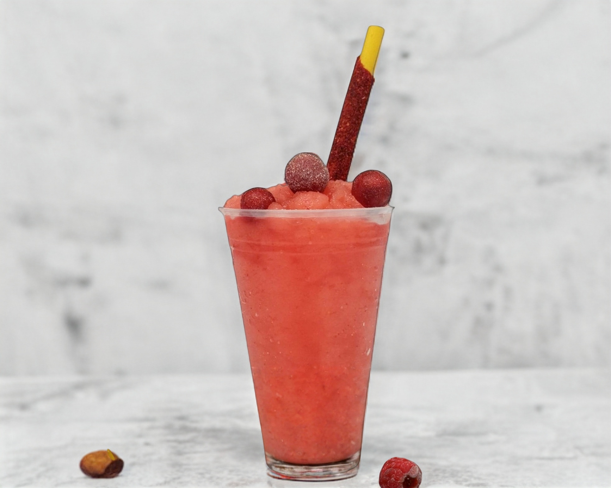 Frappé de fresa natural con chamoy y Miguelito