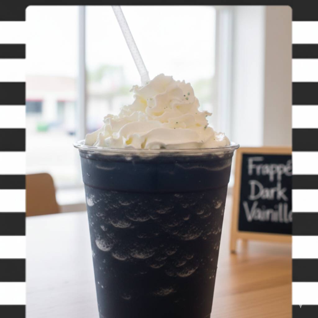 Frappé de asombroso sabor vainilla con carbón activado de 16 oz. en base de leche.