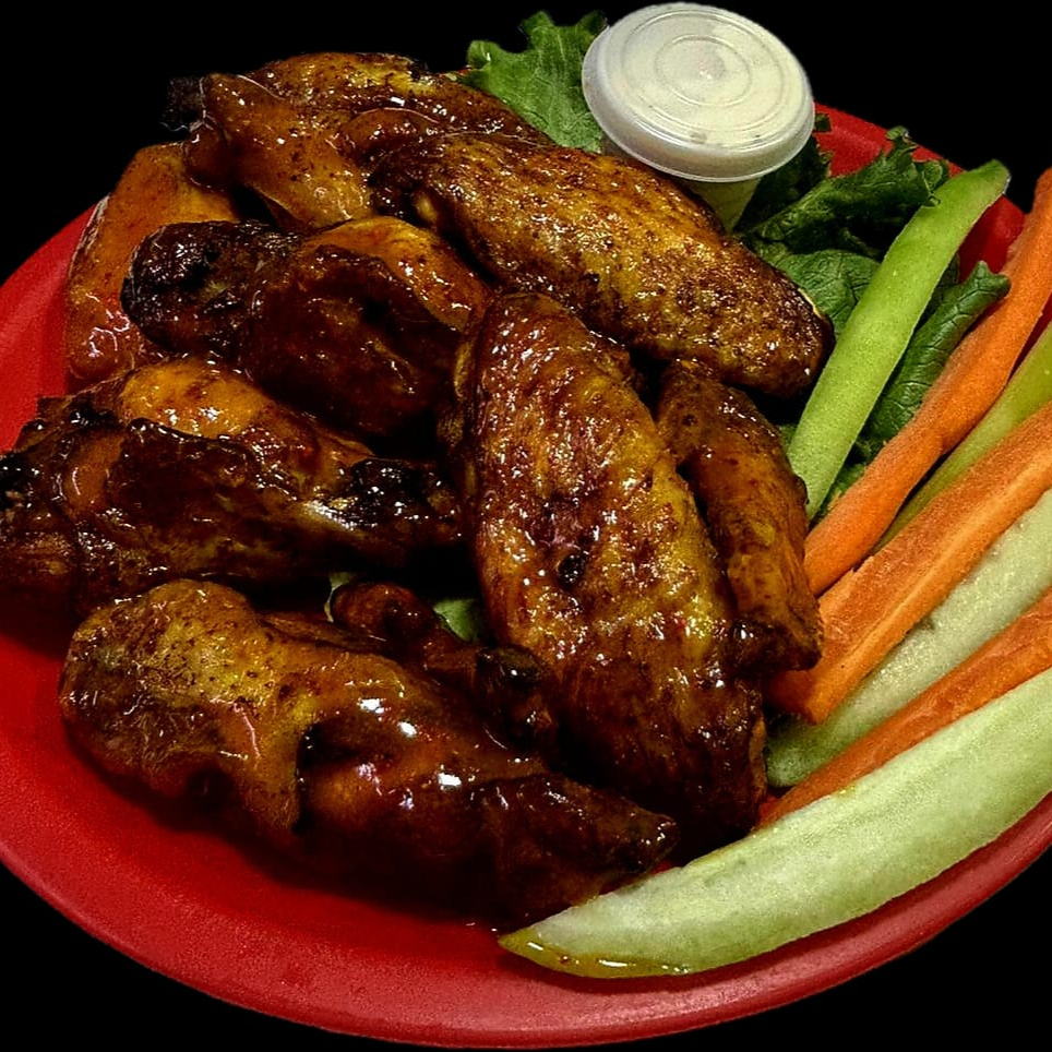 8 piezas acompañadas con bastones de pepino y zanahoria, lechuga italiana y aderezo Ranch