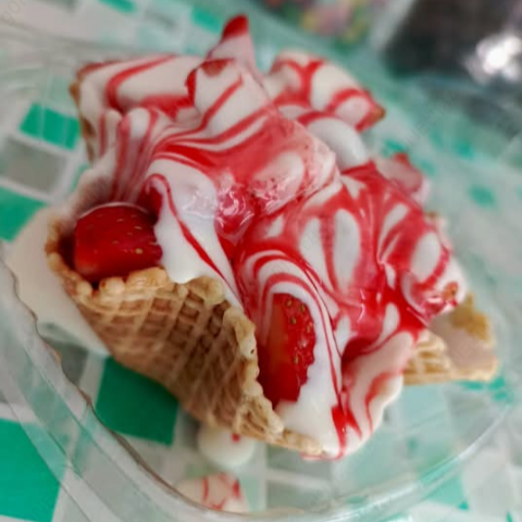 Fresa natural con crema de la casa y 2 toppings a elegir.